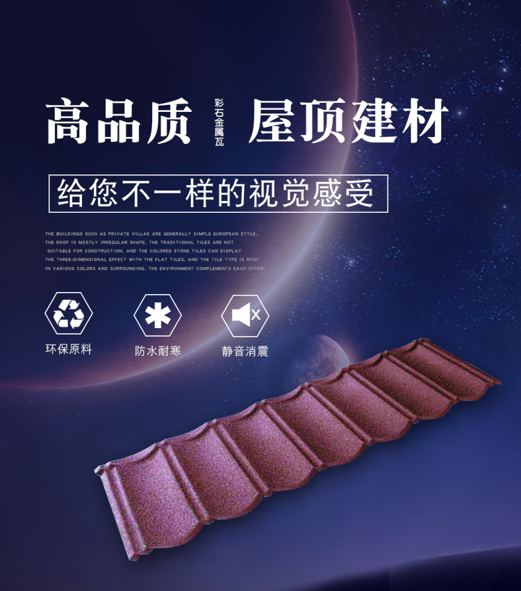 金屬魚鱗瓦表面顯圓錐凸感,高檔、雅致,復古中帶有現(xiàn)代感,淡雅含蓄,細膩天成,立體感強。適用于30°以上的圓球形、錐形、扇形及不規(guī)則坡屋頂?shù)膽?/div>